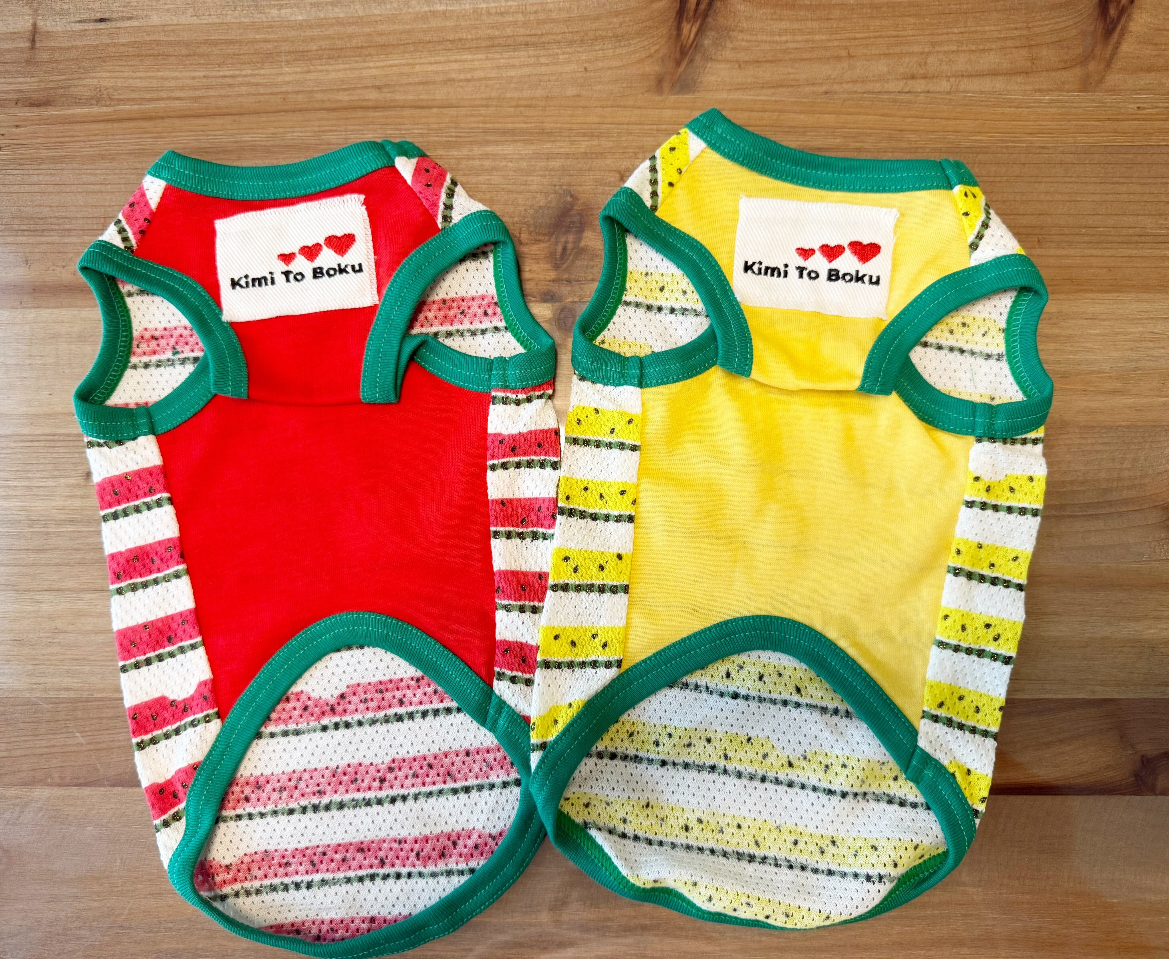 夏にぴったりなすいかボーダータンクが新登場です!メッシュ生地で通気性が良く、cotton100%の素材を使用しているため、愛犬が快適に過ごせる設計が魅力です。ちょっと食べられているような可愛いスイカ柄が、見る人の心をキュンとさせるデザインです。お散歩やお出かけに愛犬のおしゃれを楽しむための素敵なアイテムです!